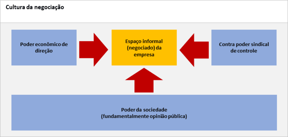 Como se vê, também aí entram os três poderes/interesses identificados na cogestão alemã.