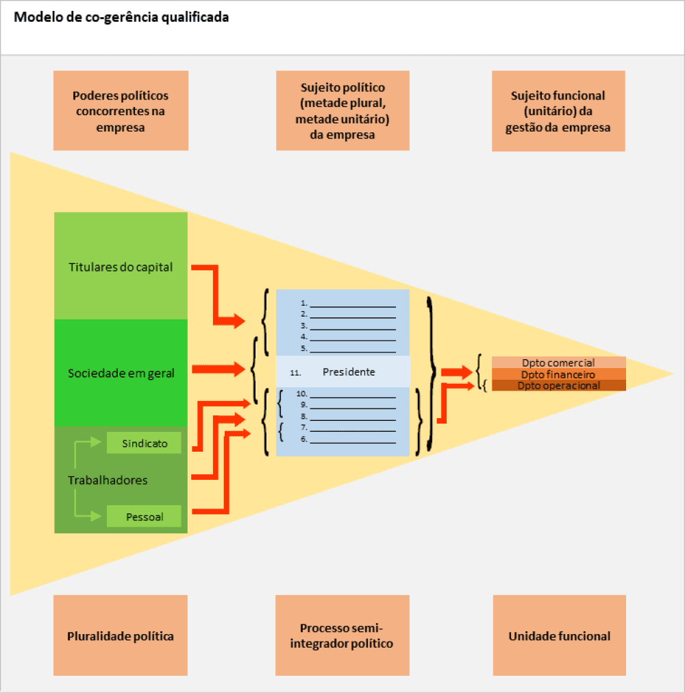 Sua estrutura (de acordo com os gráficos utilizados até agora) poderia visualizar-se no “Modelo de cogerência qualificada“.