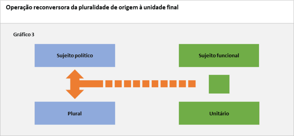 A visualização se faria com uma figura de características iguais àquela representada no gráfico Unidade funcional e pluralidade política, no centro.